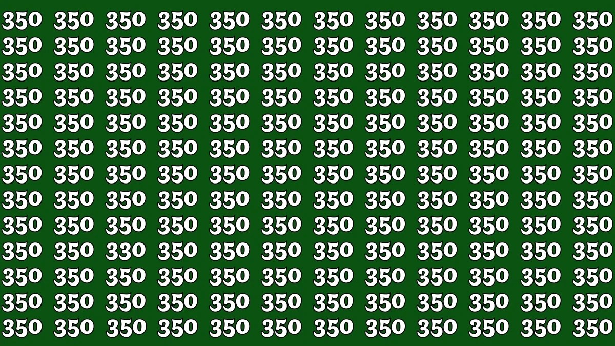 At first glance, the numbers appear identical, with "350" repeating across the entire grid. But if you look closely, there’s one number that doesn’t quite match. While most of the numbers are 350, one number contains 330, with a subtle change in the second digit. The trick is to focus on the middle number carefully and spot the difference.