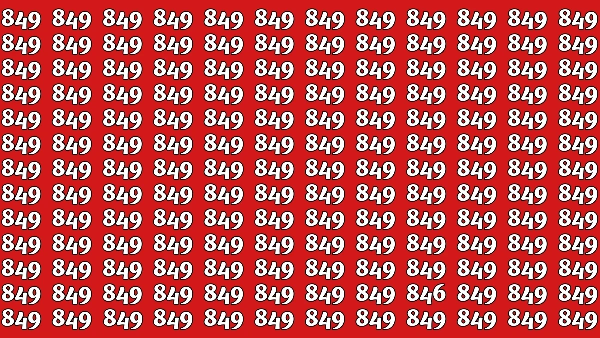 In the image, the number "846" is hidden among a sea of "849" numbers, making it a fun challenge for the eyes. If you closely observe the bottom row of numbers, you’ll notice that almost every number is "849". However, one of them is slightly different: it's "846", where the middle digit is a "4" instead of a "9".