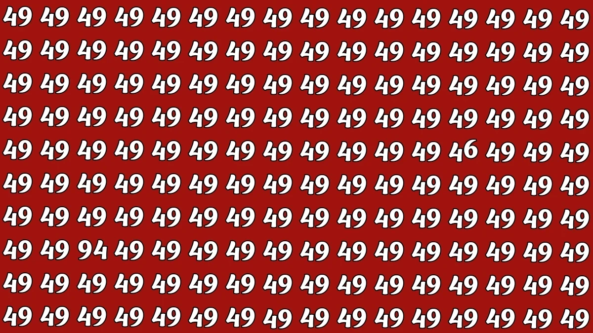 This optical illusion challenges your observation skills by hiding the numbers 46 and 94 among several 49s. At first glance, the image looks like a random cluster of repeating 49s, making it hard to differentiate.