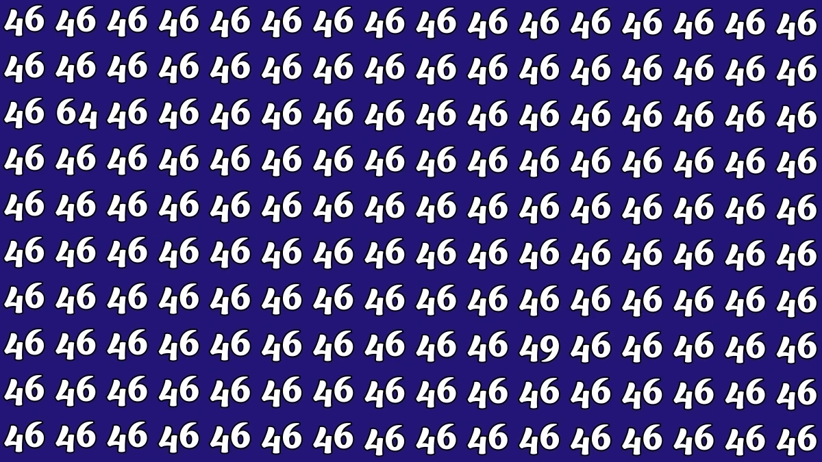 In this optical illusion, the main task is to spot the numbers 49 and 64 hidden among rows of repeated 46. At first glance, the repeating pattern of 46s confuses the eyes, making it difficult to notice subtle differences.