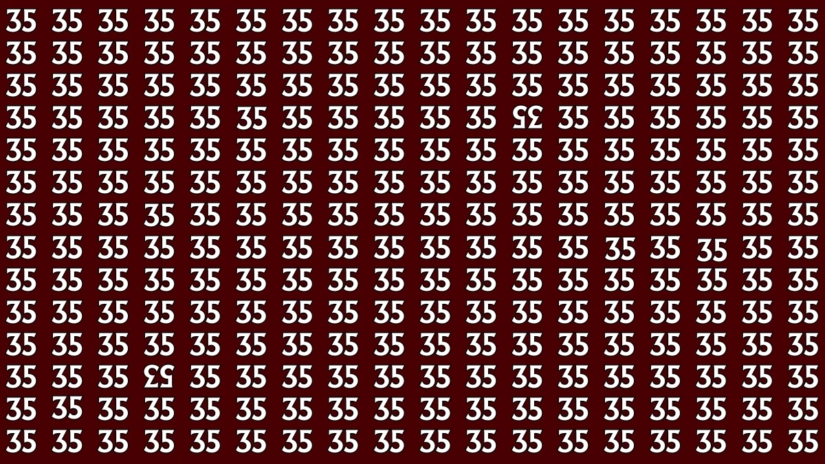 In this optical illusion puzzle, the challenge was to spot the inverted numbers 35 and 53 among the sea of 35s within 6 seconds. The inverted numbers are subtle but distinct 35 appears as 53 and vice versa.