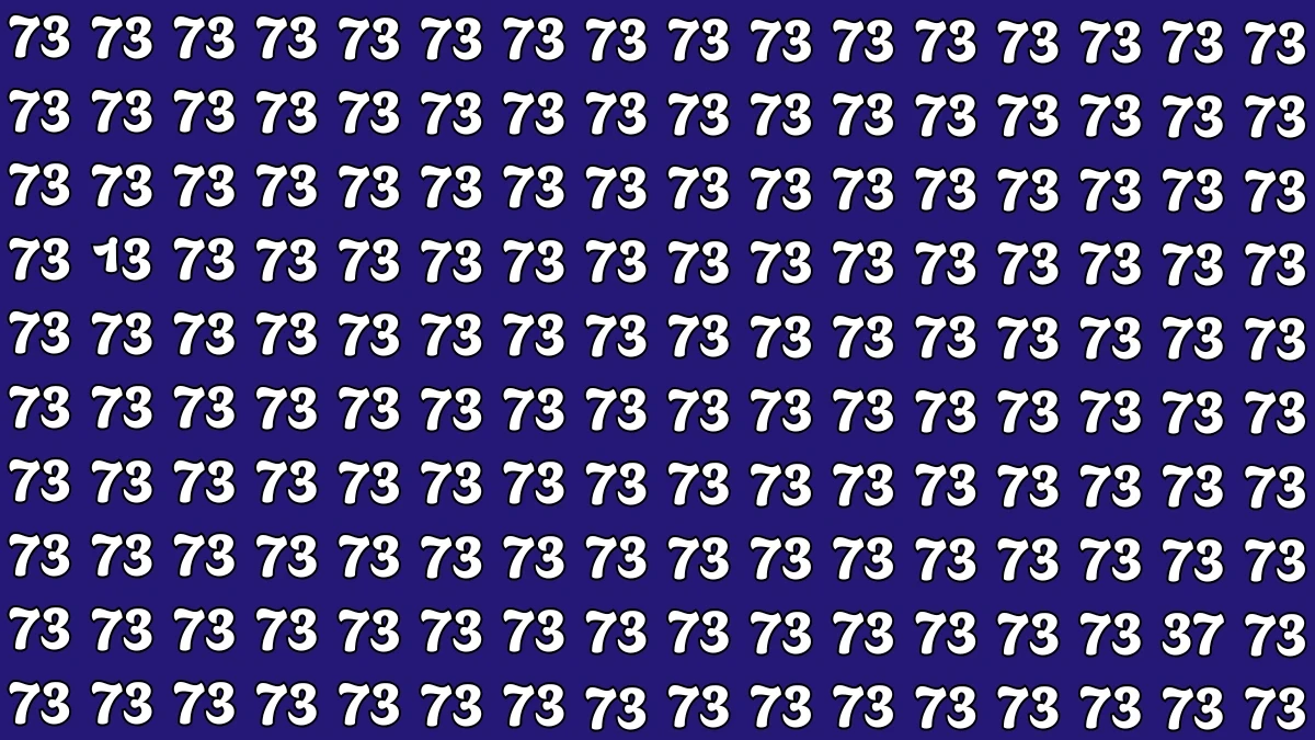 Are you ready for a fun visual challenge? Test your observation skills with this optical illusion! In this puzzle, you'll need to find the numbers 13 and 37 hidden among a grid full of the number 73.