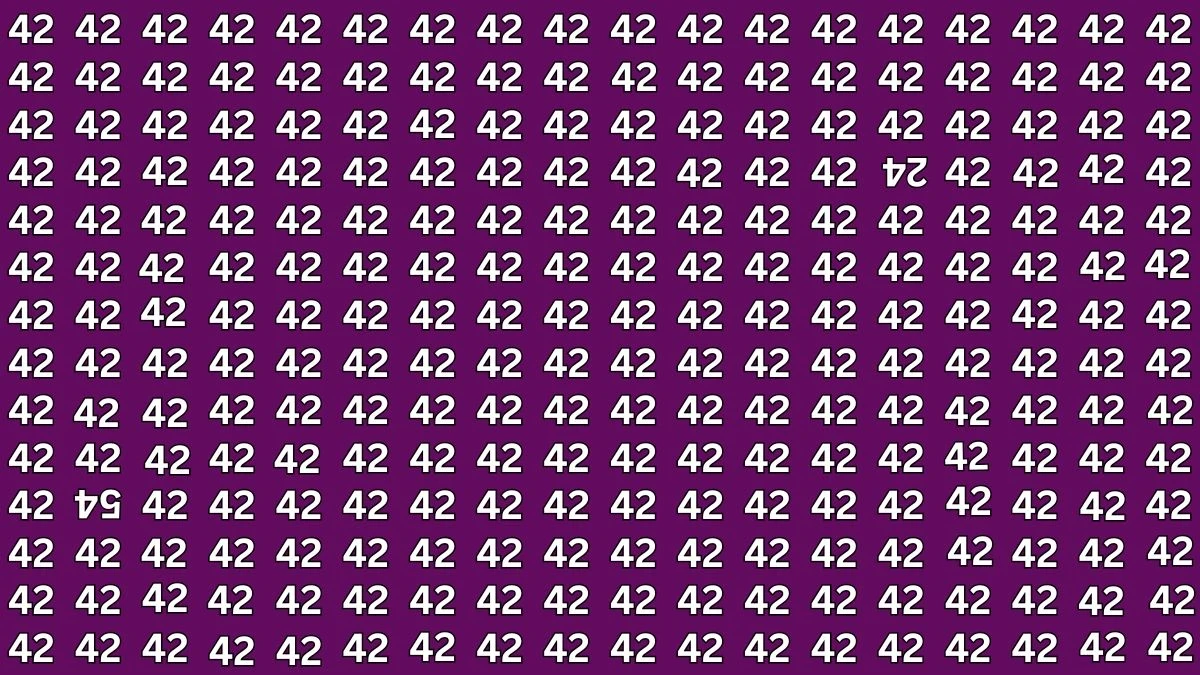 Within 8 seconds, spot the inverted 24 and 54 among 42s. Sounds easy, right? Well, think again! The numbers 24 and 54 are cleverly inverted to look like 42, making it trickier than it appears.